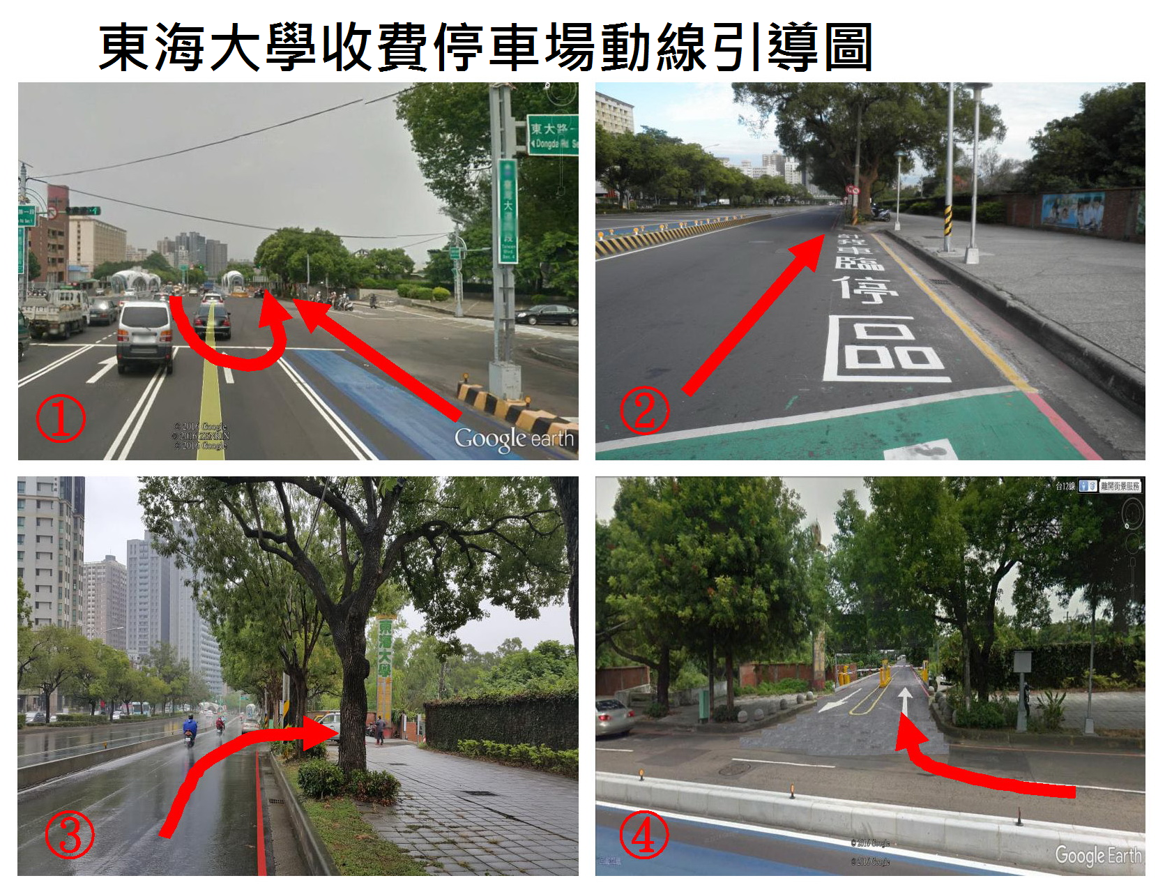 本校遊客收費停車場已於106.1.9正式啟用,該處停車場離東海牧場、東海湖僅有3分鐘步行時間,且現場附近已有校園電動接駁公車可以搭乘至校園各處景點。 遊客開車來校請由大門外慢車道往台中方向行駛約500公尺後可進入停車場,我們竭誠歡迎您舉家蒞臨東海,悠閒徜徉校園風光。 ※本停車場停車前30分鐘免費。